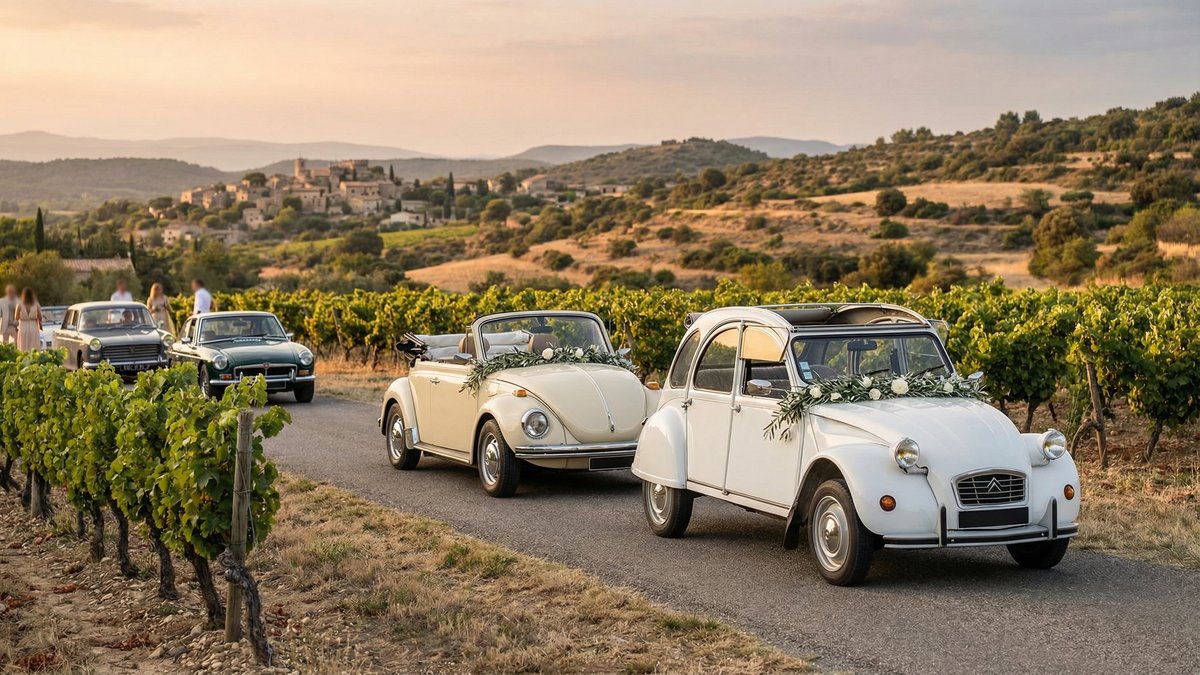 Le premier réflexe de beaucoup de couples, c'est : "On loue plusieurs voitures anciennes, on fait participer tout le monde, ça fera une super ambiance." Sur le papier, oui. Sur la route Marseille - Cassis un samedi de juin, beaucoup moins.